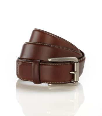 Overview Fossil Men's Brown Leather Belt Men's, Belts. This versatile belt will look great with khakis or brown dress slacks. Contrast stitching offers contemporary style Smooth brown leather Silvertone roller buckle Imported