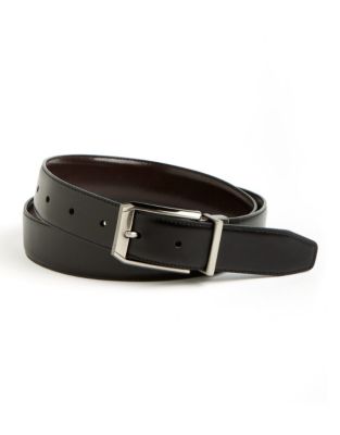 Overview Perry Ellis Portfolio Men's Black/Brown Reversible Belt with Swivel Buckle Men's, Belts. Graceful and contemporary, ensure a perfect match with virtually any outfit in this reversible, black/brown leather belt from Perry Ellis. Contemporary, reversible black/brown leather belt with feather-stitched edge Brushed, 2-tone gunmetal swivel buckle Smooth cowhide finish Width: 32mm Leather Imported