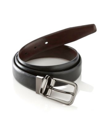 Belts. Exclusively ours! A leather belt that reverses from black to brown for twice the style. Reversible is versatile. Polished finish keeps you looking sharp. Feathered edge provides casual comfort. Simple shaped buckle never goes out of style. Leather Imported
