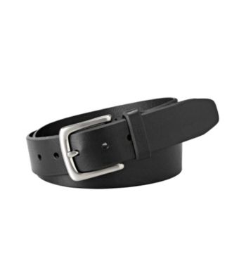 Belts and Belt Buckles. A classic black leather belt with a silvertone buckle that has a shiny finish for timeless appeal. Square buckle with rounded edges Light pebbling adds rugged style Shiny finish on the buckle Leather Imported