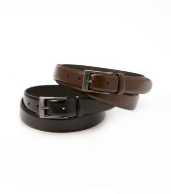 Belts. Exclusively ours! A genuine leather belt with rectangular gunmetal buckle and single loop for classic style. Five notches adjust for a comfortable fit Featured in black and brown Leather Imported
