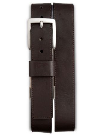 Belts. Smart, casual style featuring stretch webbing at the brushed-nickel harness for added comfort. Stretch webbing at brushed-nickel harness buckle Stitched edging Leather keeper 7 holes for a custom fit 1-3/8" wide Leather Imported