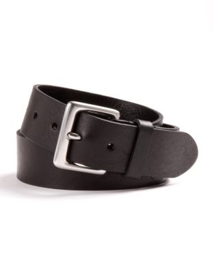 Belts. The ideal accessory for jeans or khakis! When it comes to adding a stylish touch to your laid back wardrobe, the Lauren Casual Men s Leather Belt should be your first choice. Constructed with a wide strap and single tang weathered metal buckle, this hearty men s leather belt provides a vintage look while still keeping you fashionably outfitted. Featured in Black Leather Imported
