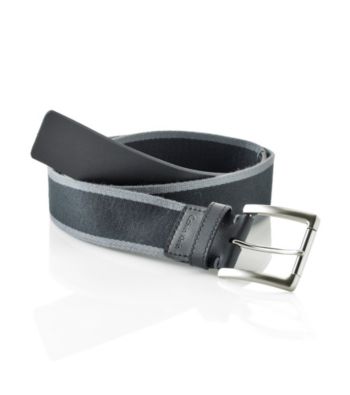 Belts. A great gift idea for the man in your life! An eye catching design makes the Calvin Klein Men's Black 38mm Fabric Belt perfect for his casual wardrobe. Black with a striking gray trim along the edges, the silvertone single prong buckle provides a polished look. This fabric belt is a fantastic accessory that every man should have in his closet. Black Non-reversible Gray trim Fabric Imported